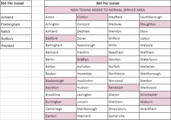 Normal turnaround time is two to four business days, not including holidays or delays due to inclement weather or unforeseen circumstances (e.g., any conditions outside of our control including but not limited to employee accidents, injury, vehicle breakdown, etc). Orders outside of our service area may take up to seven business days. Please note, the first business day is the day following when the order is placed (e.g., if an order is placed on Tuesday, the install/removal will be completed no later than the end of business on Friday).
